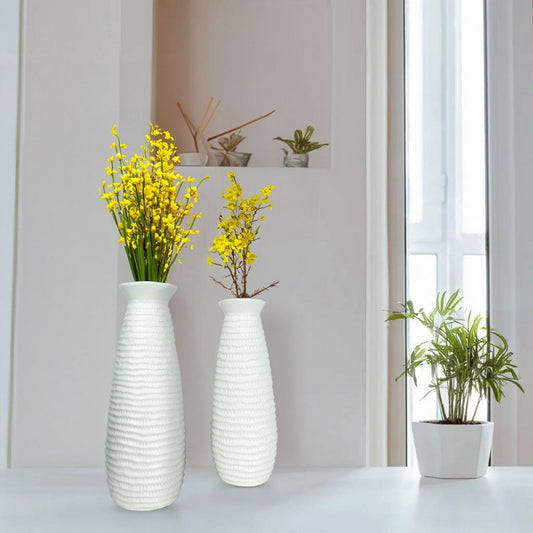 White Textured Polyresin Vase | Polyresin Modern Vase | Textured Vase | Design Vase | Home Decor