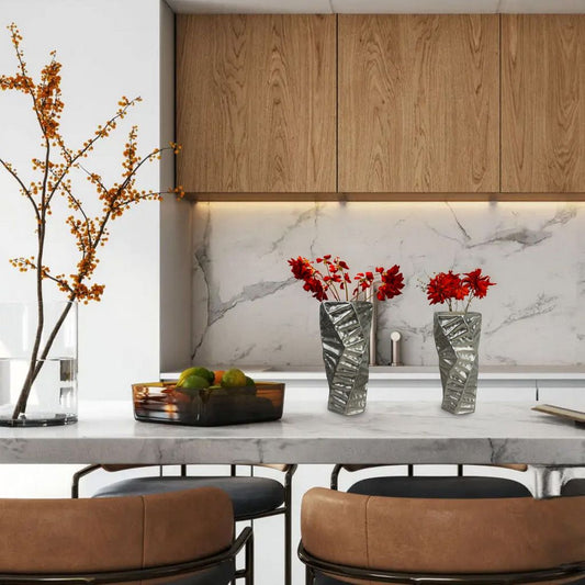 Vase-Set of 2-Silver-Home Decor-Home Accent-Modern-Contemporary-Sleek-Centerpiece-Gift