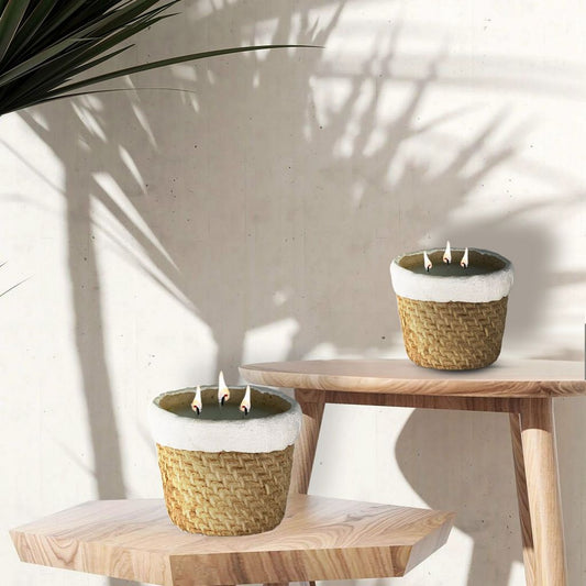 Candles-Set of Two-Rattan Looking-Rustic-Earthy-Outdoors-Home Decor-Centerpiece-Decoration