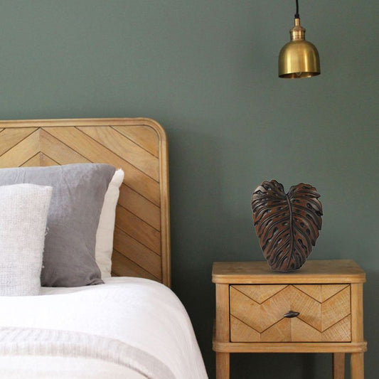 Brown Leaf Polyresin Vase | Holiday Gift |Contemporary Vessel | Modern Brown Polyresin Vase | Rustic