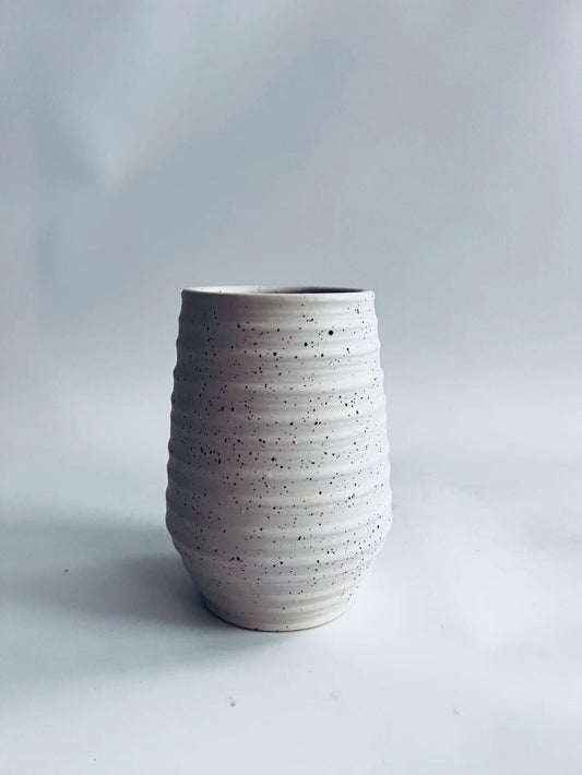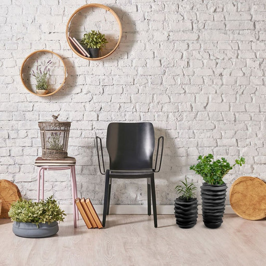 Set of Two Black Vertical Grooved Vases | Holiday Gift | Black Textured Vase | Ceramic Vase