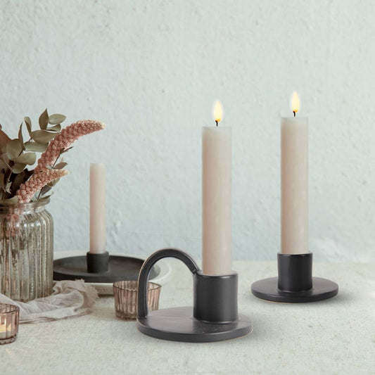 Set of Two Short Candlesticks-Taper Candles-Matte Black-Modern-Minimalist-Home D cor-