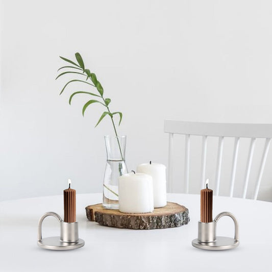Set of Two Short Candlesticks-Matte Titanium Silver-Modern-Minimalist-Home D cor-Taper Candles