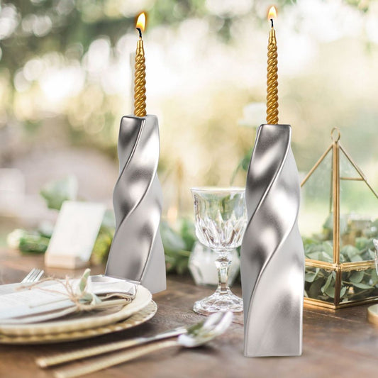 Set of Two Candlesticks-Tall-Curvy-Taper Candles-Matte-Titanium Silver-Modern-Cool-Modern Chic-Home