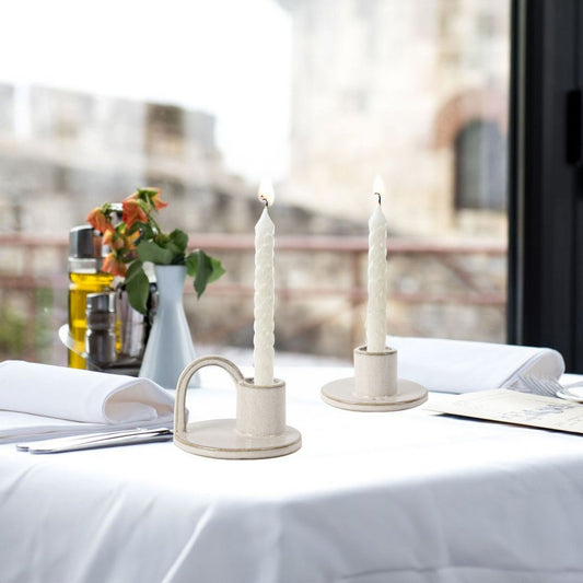 Set of Two Candlesticks-Glazed White-Rustic-Earthy-Glazed White-Short-Small-Vintage-Boho-Retro
