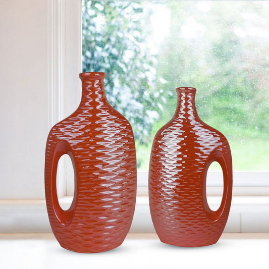 Set of 2-Vases-Water Jug Shape-Santa Fe Style-Red-Home D Cor-Earthy-Rustic-Organic-Southwest-Home Ac