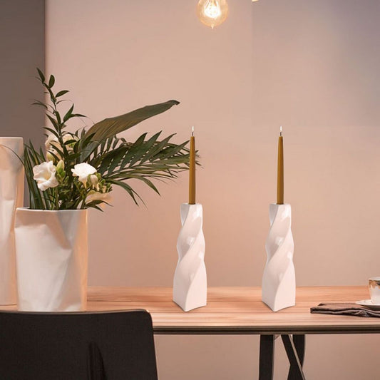 White Four Pillar Ceramic Candle Holder | Holiday Gift | Modern Decor
