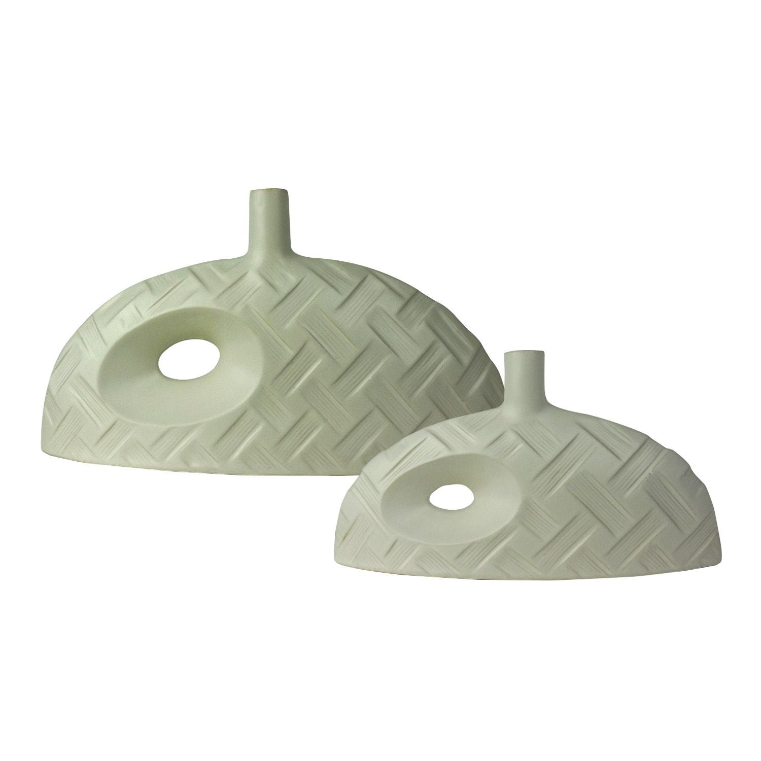 Introducing our Set of Two Textured Weave Pattern Vases, inspired by the timeless charm of water vessels. These stunning vases in elegant white capture the essence of simplicity and sophistication, making them a versatile addition to your home decor.